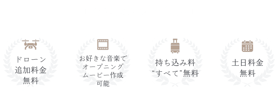 私たちは“想い出”をお二人が何年経っても鮮明に思い出し【笑顔】になれる、そんな作品をお届けします。